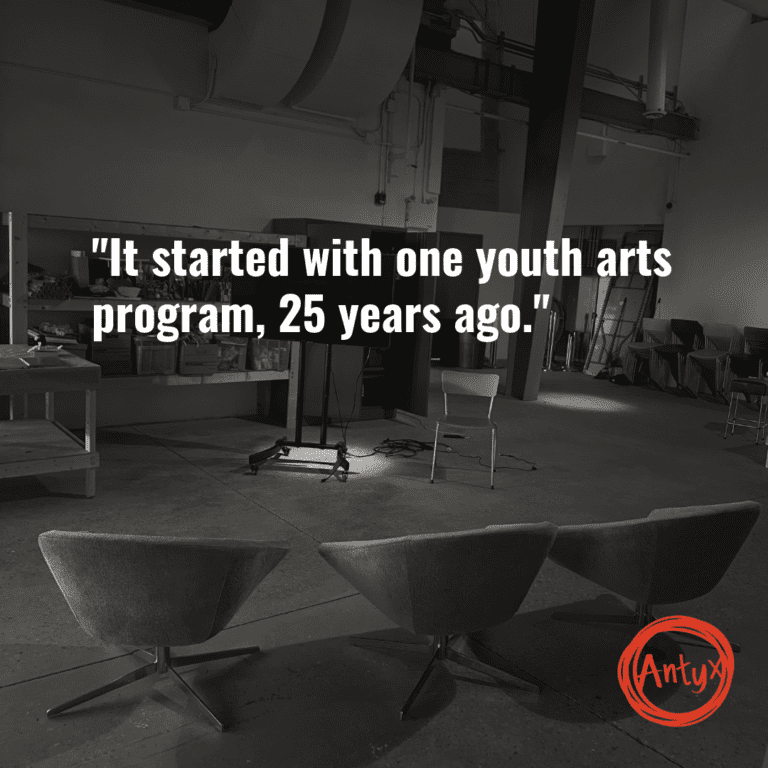 When Erik was 15, his parents signed him up for a theatre camp at All Nations Theatre, one of Antyx’s founding organizations. He was shy and not ready to put himself out there. In fact, he still remembers it as one of the most uncomfortable things he had ever done.