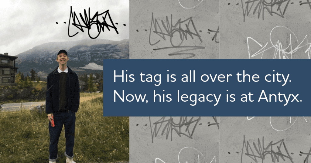 Connor’s days were spent exploring Calgary, listening to rap and classic rock, and developing a growing talent for street art. His unique “Chiba & Monchichi” tag can be found throughout the city. A lasting mark of a life lived with curiosity and energy.